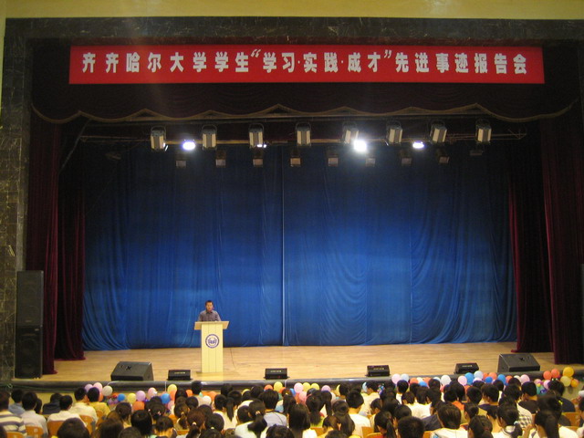 6月10下午,我校大學(xué)生“學(xué)習(xí)·實踐·成才”先進事跡報告團在中區(qū)文化宮隆重舉行首場報告會。學(xué)校黨委副書記王鳳琴蒞臨指導(dǎo)。校團委書記黃偉中主持報告會。外語學(xué)院副書記副院長楊國志、計控學(xué)院副書記副院長丁新、理學(xué)院副書記副院長胥軍參加了報告會,以上三個學(xué)院的團委書記、輔導(dǎo)員以及1600名學(xué)生代表聆聽了報告。 組建大學(xué)生“學(xué)習(xí)·實踐·成才”先進事跡報告團是為了深入貫徹學(xué)校黨委的工作部署,全面推進社會主義榮辱觀教育活動和“樹形象、創(chuàng)一流業(yè)績”主題教育活動向縱深方向發(fā)展,廣泛宣傳我校團員青年中涌現(xiàn)出的先進人物及典型事跡,用身邊人、身邊事教育引導(dǎo)學(xué)生,激勵感染廣大同學(xué)刻苦學(xué)習(xí)、銳意進取、投身科技、實踐成才,爭當全面發(fā)展的學(xué)習(xí)標兵。