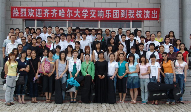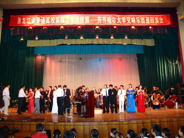哈爾濱商業大學校長曲振濤在演出前對我校交響樂團做了介紹。他代表商業大學對我校交響樂團來到商業大學進行巡回演出、送高雅藝術進校園表示歡迎和感謝,并對我校交響樂團取得的成就表示祝賀。