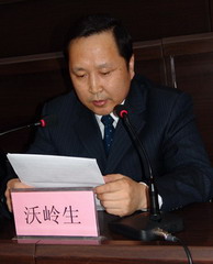 市委常委、政法委書記沃嶺生發表了講話。他首先代表市政府對我校大學生消防志愿者協會的成立表示熱烈祝賀。