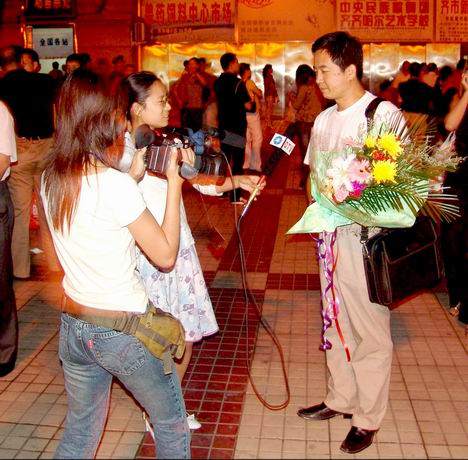 8月25日19:00時許,校黨委副書記王鳳琴、副校長曲偉建、宣傳部副部長、新聞中心主任孟憲國、團委副書記李秀梅及齊懷琴等部分指導教師、校學生會代表等到火車站迎接我校赴京參加“第四屆CCTV全國大學生機器人電視大賽”載譽歸來的參賽師生。在火車站,副校長曲偉建、計算機控制與工程學院院長戴學豐、校團委書記黃偉中、計算機與控制工程學院李春林教授等接受了齊齊哈爾電視臺記者的專訪。
