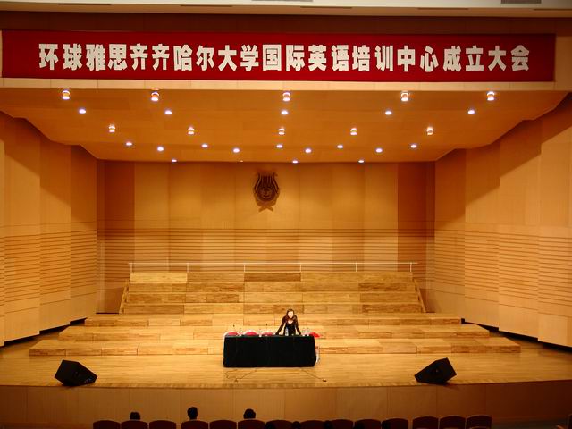 成立大會暨揭牌儀式后。環(huán)球雅思北京總部張永琪校長等在我校音樂廳舉行了環(huán)球雅思國際英語培訓(xùn)發(fā)布會的講座。