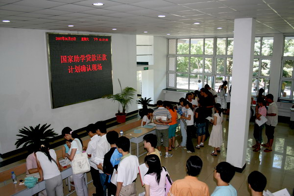 為方便畢業生辦理還款確認手續,我校本年度改變了以往由經辦銀行工作人員向學生進行講解并逐一辦理手續的傳統做法,而是由經辦銀行工作人員對學校各單位、各學院相關工作人員進行了嚴格培訓;在此基礎上,各學院對學生開展誠信教育,由受培訓的工作人員指導貸款畢業生填寫還款協議,最后由經辦銀行工作人員對貸款學生進行現場審核與確認。