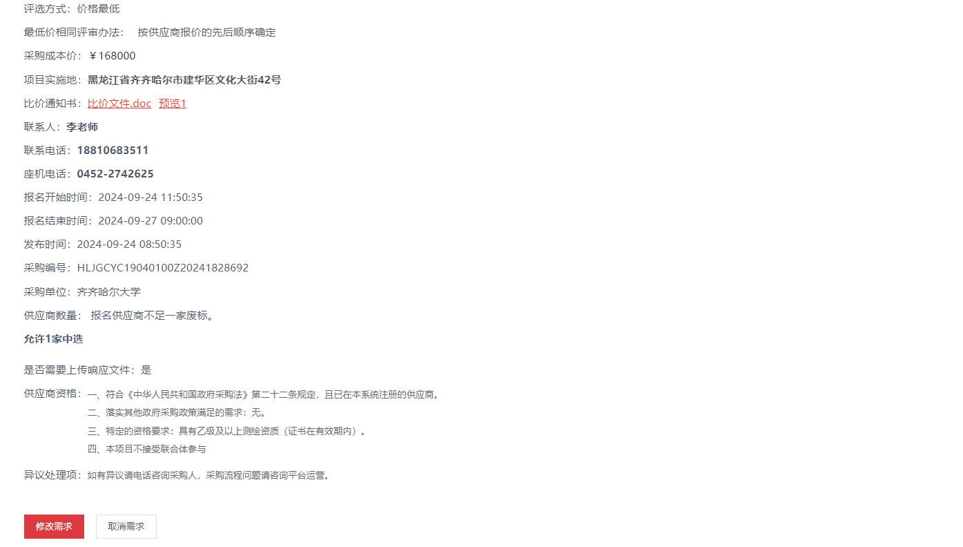 下一條:齊齊哈爾大學(xué)逸夫樓考研保密室改造工程(第4次)比價采購公告(轉(zhuǎn)自黑龍江省政府采購網(wǎng))