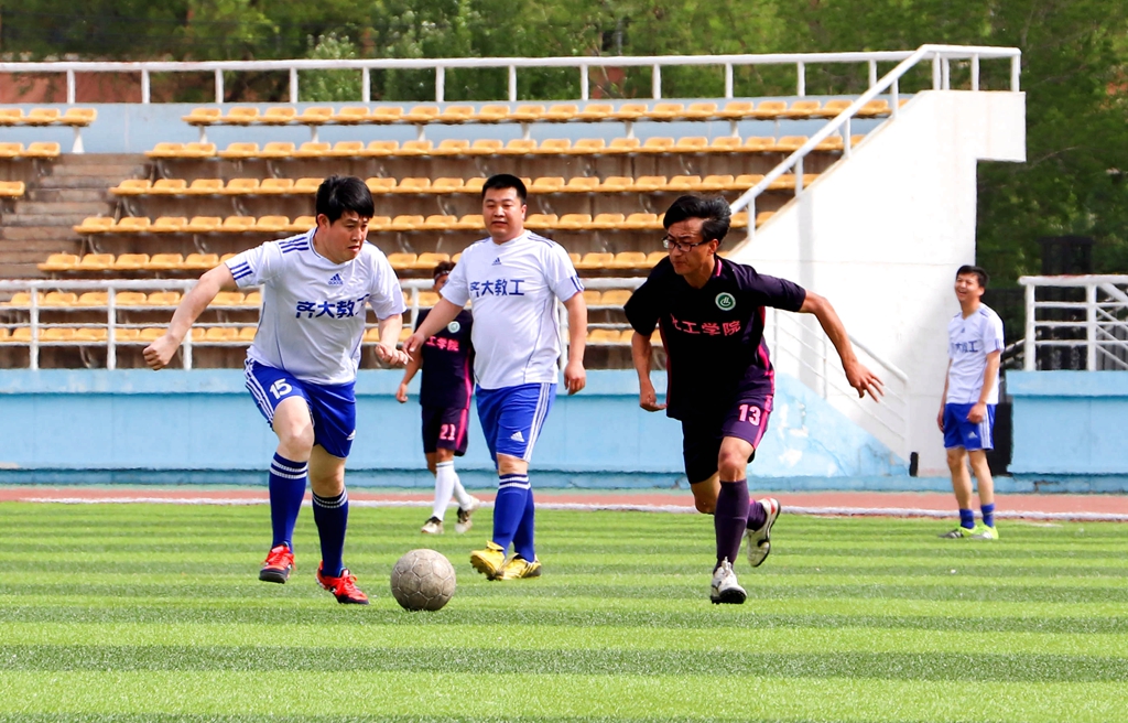 到了下半場,平均年齡三十多歲的教職工隊(duì)依舊保持著頑強(qiáng)的體力,開始組織更加強(qiáng)勢的進(jìn)攻。在比賽臨近結(jié)束的時候,教職工隊(duì)穿過層層防守,倚靠隊(duì)友配合,順利地進(jìn)行了一次打門,將比分變成了2:1。化工球隊(duì)也是始終保持著進(jìn)攻狀態(tài),下半場完成了很多次優(yōu)秀的打門。最終比賽以教職工隊(duì)2:1化工隊(duì)結(jié)束。