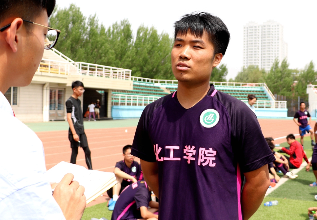 化工球隊(duì)球員、環(huán)境141班的韓曉東同學(xué)表示,“現(xiàn)在我已經(jīng)大四了,在大學(xué)一共踢過九場足球賽,今天這場是我在學(xué)校踢的最后一場,也是最開心的一場,這不僅是對足球的熱愛,隊(duì)友們的努力和成功配合也讓我感到高興。”他還說:“這場比賽雖然輸了,但是總體來說大家的表現(xiàn)還是不錯的,而且也和老師們建立了友誼,我覺得這場友誼賽很成功。”