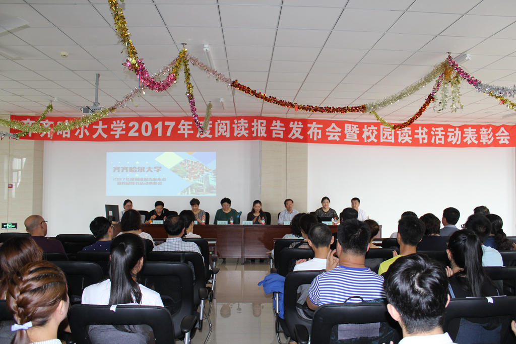 讀有溫度的書,遇見有趣的靈魂。7月11日上午,齊齊哈爾大學2017年度閱讀報告發布會暨校園讀書活動表彰會在圖書館東區館8樓報告廳隆重舉行。校黨委副書記齊宏偉、副校長呂厚均出席了會議,宣傳統戰部部長王曉梅、校團委書記蘇醒、圖書館黨委書記胥軍、館長宋波,以及研究生部、各學院主管學生工作的領導、教師代表、學生代表參加了會議。會議由圖書館副館長管振岐主持。