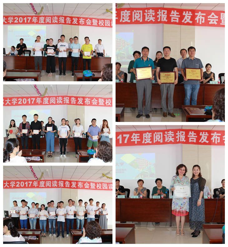 齊宏偉宣讀了2017年度齊齊哈爾大學閱讀活動中表現優異的學院、學生名單,并與參會領導一起為獲獎單位、獲獎者頒獎。