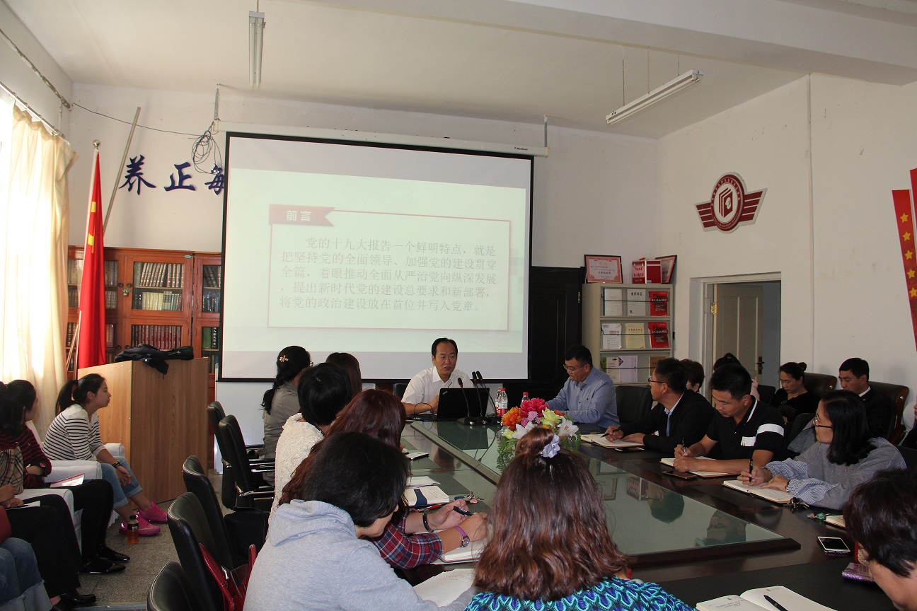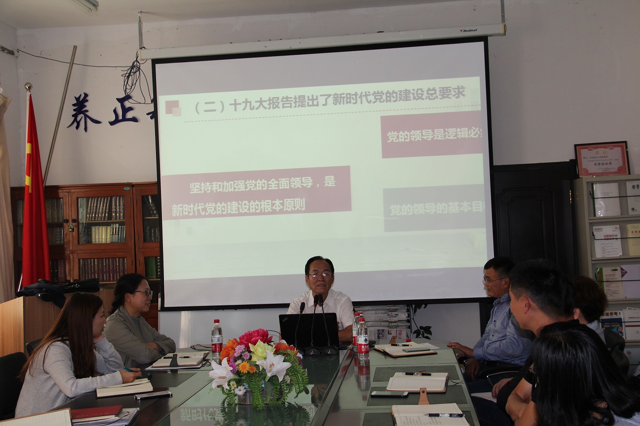 習近平總書記說,中國40年改革開放,不僅全面改變了中國,也深刻影響了世界。改革開放是中國共產黨領導中國人民進行的第二次革命。今天,在統攬偉大斗爭、偉大工程、偉大事業、偉大夢想中,起決定性作用的是新時代黨的建設新的偉大工程。2018年9月17日,北京師范大學博士生導師馬振清教授應邀來我院做了題為“以政治建設為統領推進黨的建設新的偉大工程”、“習近平新時代從嚴治黨思想”兩場高水平的專題報告。學院于春梅書記、部分教師及研究生50余人聽取了報告,副院長王圣禎主持了專題報告會。