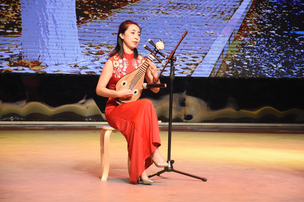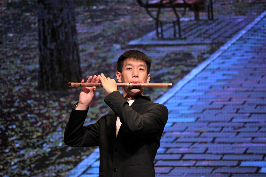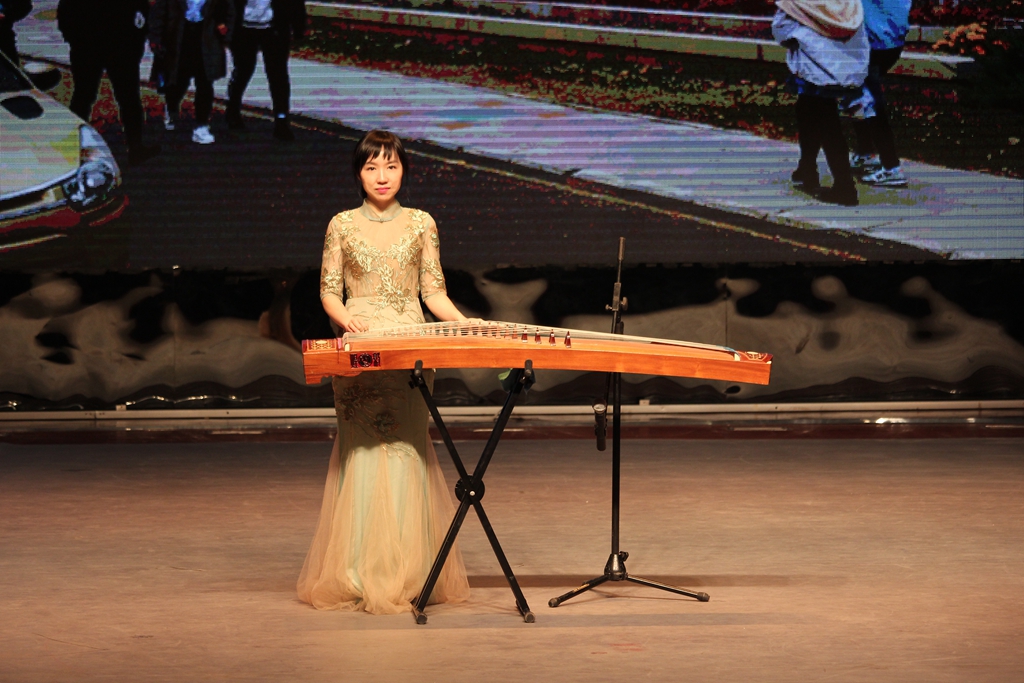 演出十分精彩,一首笛子齊奏《揚鞭催馬運糧忙》拉開了本場演出的序幕。笛聲時而急促,時而平緩,時而高昂,時而低沉,時而猶如駿馬奔馳長河落日般壯觀,時而猶如細雨清風潺潺流水般平靜,為現場觀眾們帶來了一場聽覺盛宴;男聲獨唱《烏蘇里船歌》和《鴻雁》則鏗鏘有力,充滿豪情;一首古箏彈奏曲《邊疆泉水清又純》給大家描繪了一幅浪漫和諧的畫面,彈奏者徐婷婷穿著一襲長裙,纖纖十指,帶領大家充分領略了古典樂器的魅力。