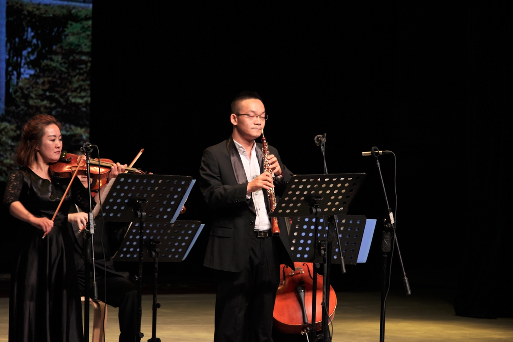 女聲獨唱《龍文》《一杯美酒》點燃了場內的氣氛,富有內涵蘊意的歌詞,震撼人心的配樂,和天籟之音相結合,深深打動了每一個人的心靈;二胡表演《錦鯉抄》和《新賽馬》令觀眾心潮澎湃;《莫扎特F大調雙簧管與弦樂》帶給人流水般的感覺,現場掌聲不斷;王海欣、孫超、姚響三位表演者共同演奏的管弦樂《銅管三重奏》完美地將西洋古典樂器與現代流行樂結合在了一起,令人耳目一新,深受各位觀眾們的喜愛;小提琴曲《鄉村小提琴》余音環繞,經久不散。