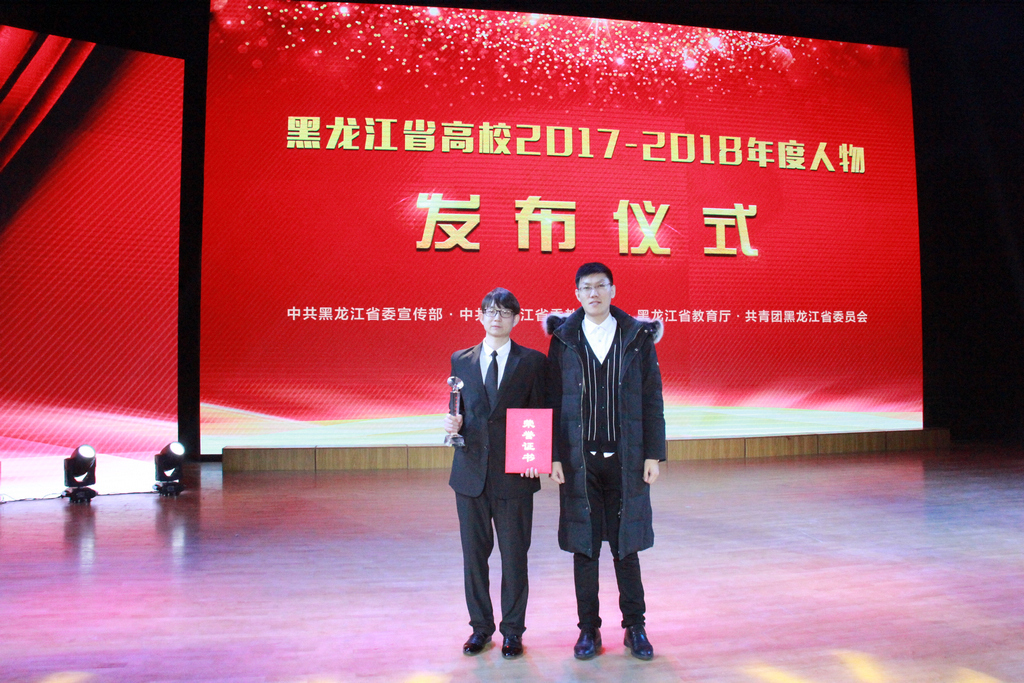 我校機電工程學院2017級18號樓原119寢室的八名同學因5月26日在嫩江江畔勇救輕生者而獲得“大學生年度人物提名獎”(群體)。機電工程學院輔導員高福生和18號樓原119寢室王藝博作為代表到現場參加頒獎活動。
