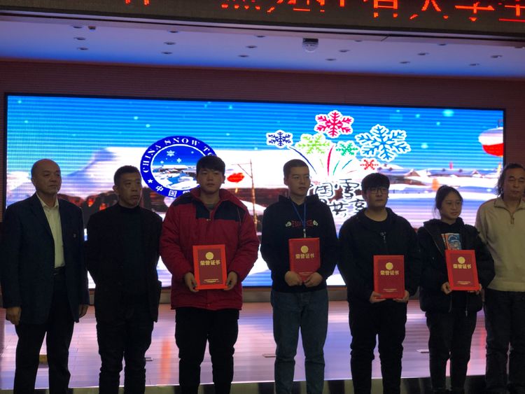 由黑龍江省教育廳主辦,2018年12月25日—27日在哈爾濱兆麟公園舉行,本次比賽共收到200多件作品,經初評,40所高校的35支參賽隊伍作品入圍比賽。齊齊哈爾大學代表隊作品《遠古的呼喚》榮獲大冰組一等獎,同時被黑龍江省省教育廳認定為"“黑龍江省藝術教育實踐教學成果”,范鐵明、王林棟獲得“優秀指導教師” 獎。馬振慶、張江岳老師指導的作品《前行》獲得大冰組三等獎。