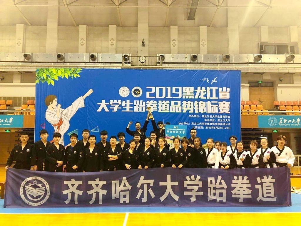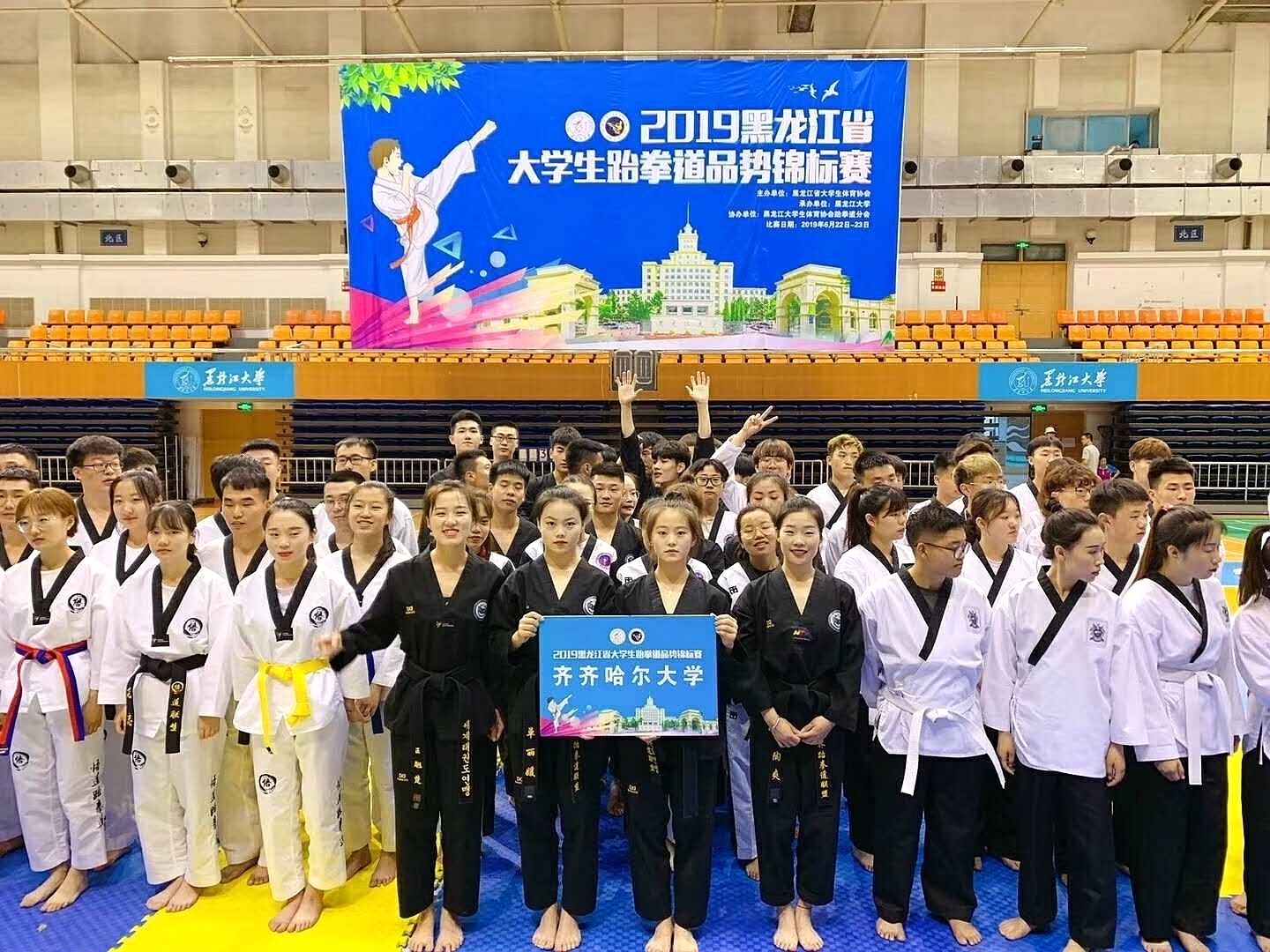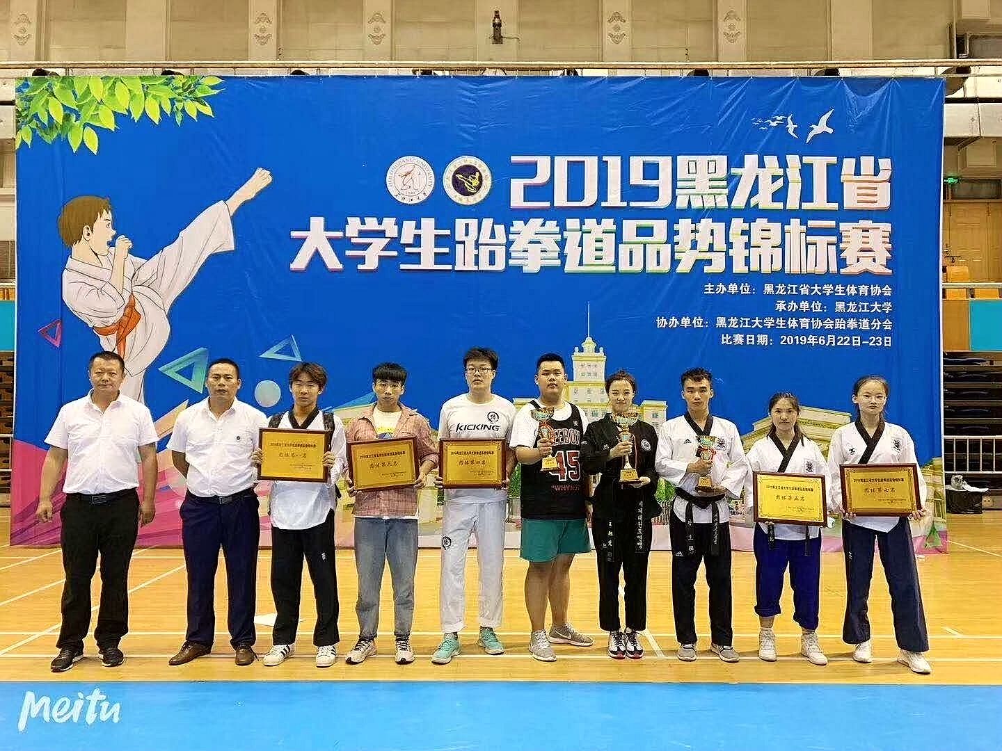 6月23日,為期兩天的2019黑龍江省大學生跆拳道錦標賽在黑龍江大學體育館落下帷幕,我校選派了28名學生參加比賽。經過2天共計410場激烈角逐,我校參賽選手共斬獲20枚金牌、18枚銀牌、7枚銅牌并獲得跆拳舞金獎,以總分276.5分的好成績勇奪此次比賽團體冠軍。