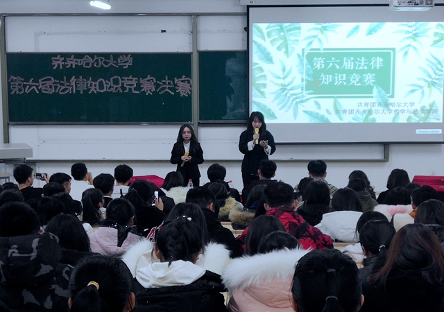 習近平總書記強調,法治宣傳要創新宣傳形式,注重宣傳實效。黨的十九大報告指出:“提高全民族法治素養和道德素質”“加大全民普法力度,建設社會主義法治文化,樹立憲法法律至上、法律面前人人平等的法治理念”,為全民普法工作指明了方向,提供了基本遵循。多年來,學校黨委始終高度重視法治宣傳工作,不斷提升法治校園建設能力。面對新時代法治校園建設的新形勢,學校將進一步增強“四個意識”,堅定“四個自信”,做到“兩個維護”,弘揚憲法精神,維護憲法權威,牢牢把握法治宣傳話語權,努力鑄造普法宣傳經典品牌,繼續深入推進法治校園建設,以實際行動不斷開創齊齊哈爾大學法治宣傳教育工作新局面,在共享法治陽光、共建法治校園、共創法治國家的生動實踐中貢獻齊大力量。