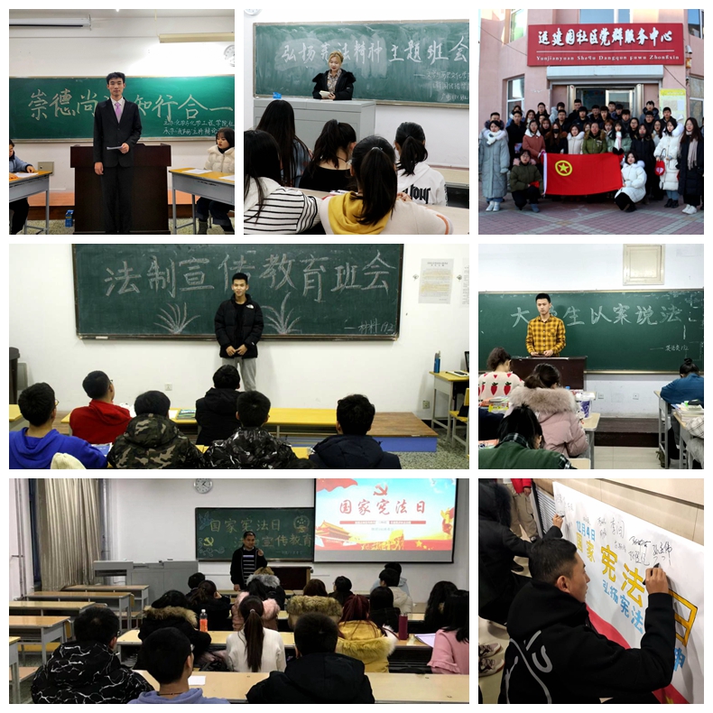 為宣傳憲法知識,樹立法治觀念,使憲法精神深入人心,化學與化學工程學院、文學與歷史文化學院、材料科學與工程學院、外國語學院、計算機與控制工程學院、輕工與紡織學院、理學院等單位以國家憲法日為契機分別以主題班會、主題簽名、主題宣講、主題辯論賽、主題講座等形式開展了豐富多樣的法治宣傳活動,使法治精神之花開滿了冬日的齊大校園。