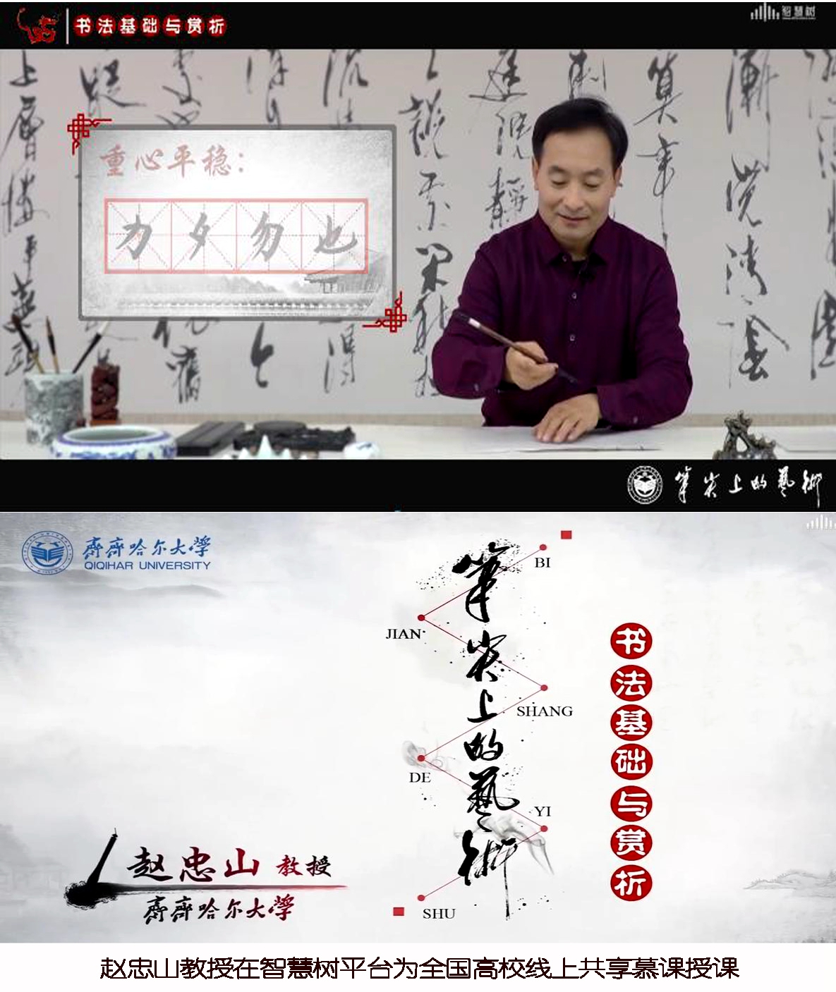 趙忠山教授從教30年來,長期致力于高校教學改革,趙忠山教授主講的《寫作學》現(xiàn)為齊齊哈爾大學校級精品課、慕課(MOOC)《藝術與審美》、自建慕課(MOOC)《書法基礎與賞析》課程,已成為齊齊哈爾大學美育教育的標志性課程。在完成自己的教學任務的同時,趙忠山教授還承擔著齊齊哈爾大學青年教師崗位培訓的教學工作,是齊齊哈爾大學青年教師的崗位培訓最受歡迎導師之一。