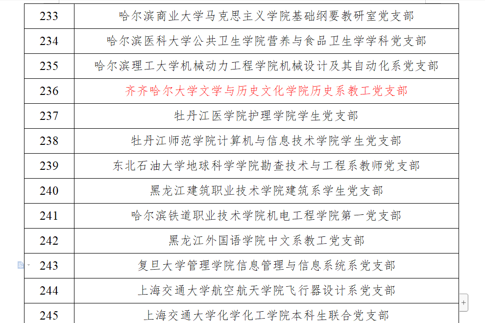 2019年12月27日,教育部下發了《教育部辦公廳關于公布第二批全國黨建工作示范高校、標桿院系、樣板支部培育創建單位名單的通知》,通知公布了入選第二批新時代高校黨建示范創建和質量創優的全國10個黨建工作示范高校、99個黨建工作標桿院系、999個黨建工作樣板支部。我校文學與歷史文化學院歷史系-東北地區中日關系史研究會聯合教師黨支部(以下簡稱“歷史系教師黨支部”)獲批“全國黨建工作樣板支部”。