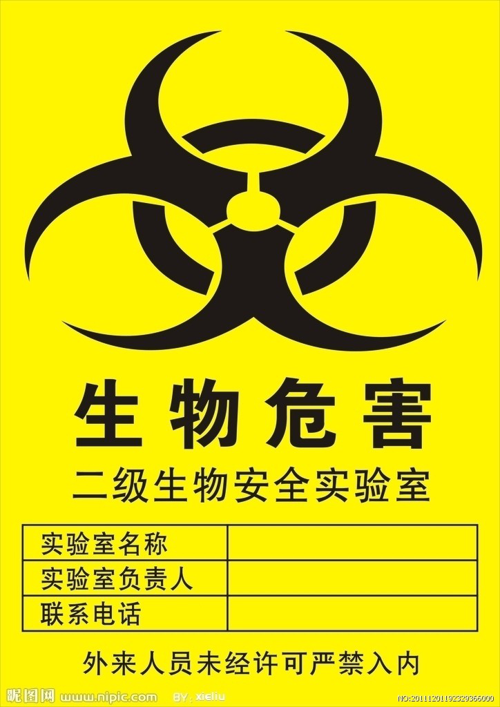 4.有實驗動物、微生物的實驗室須在室內外醒目位置張貼危險警示標識;