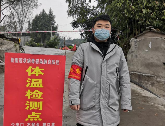 伏桃是生命科學與農林學院生物182班的入黨積極分子,家住四川省南充市南部縣曉霞村。2020年的春節假期他過得格外忙碌而充實。大年初一,伏桃就在黨員姑父的幫助下,報名成為了抗擊疫情志愿者,跟隨濱江辦事處的工作人員在南部客運站,對下車人員進行體溫檢查,對體溫異常人員進行登記,并及時上報給客運站負責人。隨著疫情的發展,大年初四,伏桃的家鄉曉霞村采取了封村措施,他便開始在村口對過往車輛和行人進行登記、測量體溫,不讓任何一個有異常的人員進入村子成為了他的工作宗旨。“我相信只要每個人都肯為防控疫情出力,我們就一定能很快打贏這場疫情阻擊戰。”伏桃說。