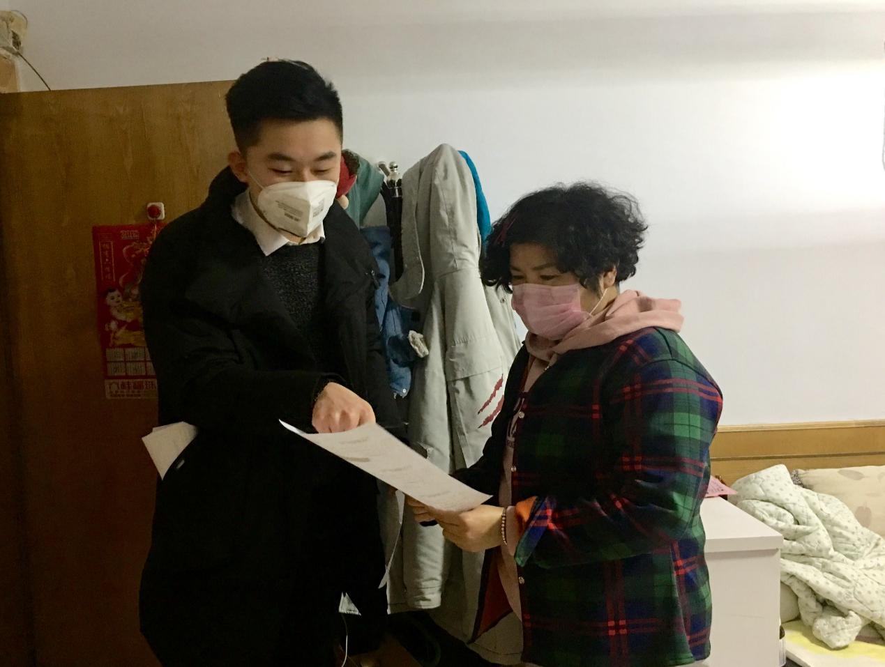 國貿181班的張薇參加了村里的志愿服務活動,她執勤的主要內容是負責村里包括本生產隊管轄范圍的近六百戶住戶,挨家挨戶貼疫情防治告示,勸阻出門不戴口罩人員,管控外鄉和出入人員,嚴格監控管轄范圍內疑似病例和確診病例,控制道路上人流量。每天上午8:00開始,張薇在小區門口執勤,下午在村頭執勤,一直到18:00。生產隊有時還安排她執晚班,一直到晚上十點。雖然每天都在外奔波,但她卻表示,能夠與伙伴們一起站在抗擊疫情的戰線上,盡自己的一份力,這種體會是躺在家中感受不來的。