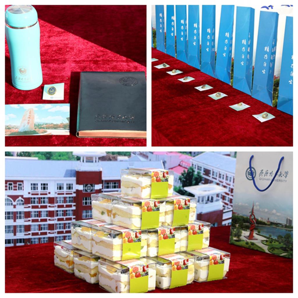 校黨委副書記張文治與相關部門、學院的領導一起參加了生日會,并為“小壽星”們一一佩戴上了齊大校徽,送上了甜美的蛋糕和精心準備的生日禮物。