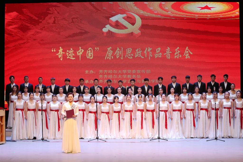 “風聲、雨聲、讀書聲、聲聲入耳;家事、國事、天下事、事事關心”,這是每一名大學生都應該具有的家國情懷。近年來,在鼓勵學生主動參加活動的同時,音樂與舞蹈學院的教師們也率先垂范,充分發揮文藝工作者的職責作用,帶領學生關注祖國發展,把教學之中的仁愛之心延伸到社會活動中去,聚焦扶貧、小康、發展、抗疫等主題爭相進行藝術作品創作,其中鋼琴組曲《卜奎印象》《中國的“中”》、抗疫歌曲《故事中國》《你沒有走遠》《最美的旗幟》《奇跡的顏色》等優秀作品獲得國家級、省級大獎。教師們不僅自己創作、表演這些作品,還把這些優秀作品引入課堂,實現社會實踐與課堂的有機融合,將深植于作品中的價值觀和正能量“基因式”地融入教學中,培養學生兼濟天下的大胸懷。在“奇跡中國”原創思政作品音樂會的16首作品中,通過小康路上、抗疫贊歌、百年畫卷三個樂章,歌頌了扶貧攻堅、抗疫逆行、追夢奮斗中我黨、我國人民不忘初心,砥礪前行的閃光形象。演出中,師生共同體會仁愛之心,深情演繹家國情懷,讓思政元素為社會實踐活動鑄魂,成為課堂教學的有力補充。