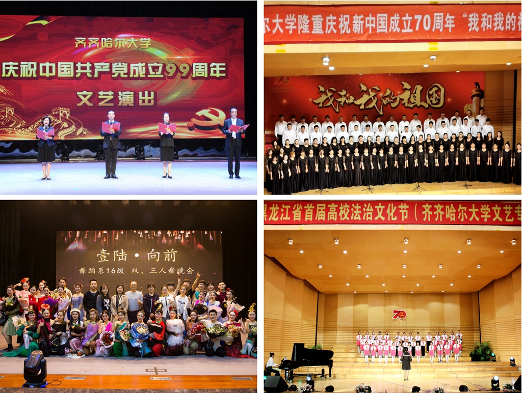 “問渠哪得清如許,唯有源頭活水來”,思政元素是人才培養的源頭活水,為傳統教學注入了新能量,在授課中起到了畫龍點睛的作用,讓教師“授業、解惑”的同時更強調了“傳道”,將立德樹人做深做實。在《聲樂》課程的教學中,分年級、分難度、分時段系統性地選擇有代表性的“紅色經典”歌曲加入教學計劃并精心設計,結合歌曲創作背景分析、學生表演的二次創作等一系列教學環節,帶領學生們回顧歷史,在把握作品、體會情感、音樂表演中進行愛國主義和初心使命教育,引導學生樹立正確的價值觀、人生觀,該教學團隊獲批2020年“課程思政”示范課程建設立項,課程組負責人朱艷彬教授榮獲黑龍江省課程思政教學名師稱號。課程《達斡爾音樂》為全國高校首創,不僅舉辦了達斡爾族民歌教學匯報音樂會,還通過指導本科學生參與創新創業研究項目,帶領學生參加達斡爾族重大文化活動并演唱傳播達斡爾族民歌,增強學生的文化自信和民族自豪感。