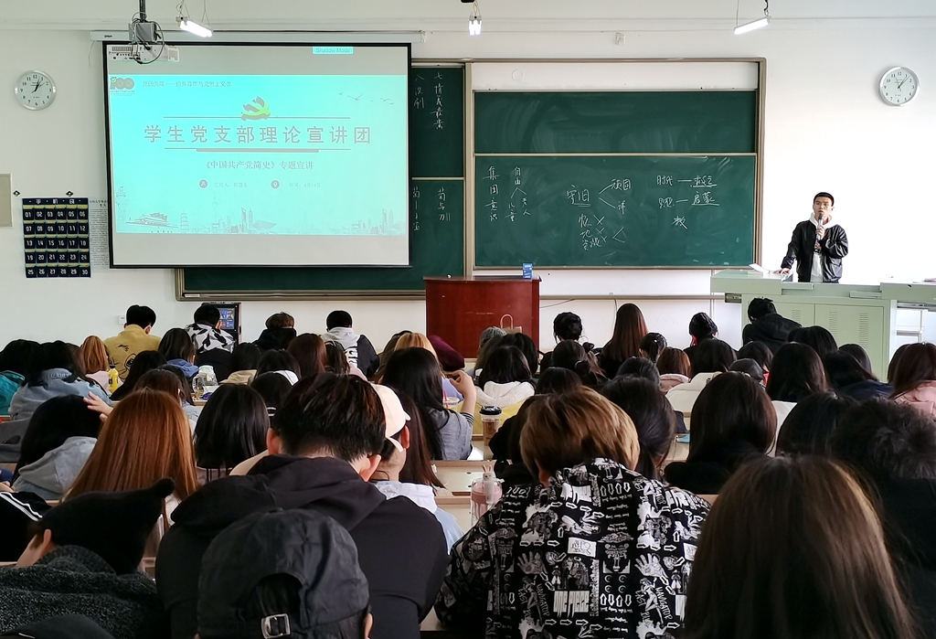 為了更好的開展對(duì)大學(xué)生的黨史知識(shí)宣講,學(xué)院成立了學(xué)生黨支部理論宣講團(tuán),并于4月14日圍繞《中國(guó)共產(chǎn)黨簡(jiǎn)史》一書開展了首場(chǎng)校內(nèi)宣講,學(xué)生支部書記郭雪冬,學(xué)生黨員尹圣瑤、徐雪、楊闖、李安佳、吳婉姝分別進(jìn)行黨史專題宣講。