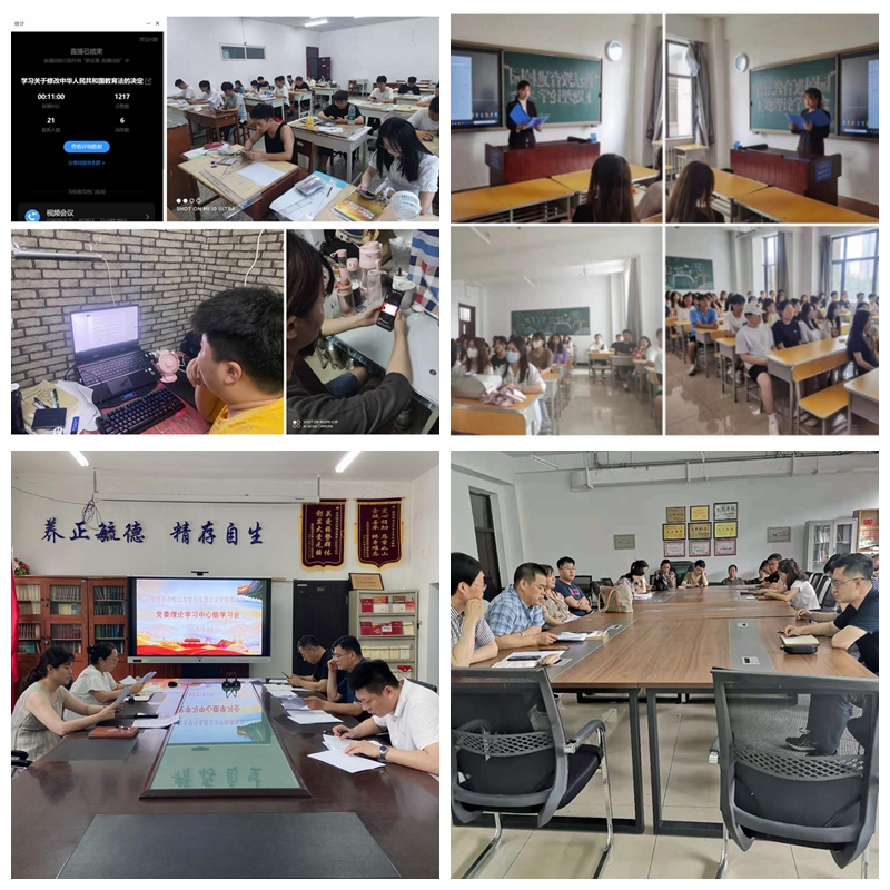 在“八五”普法的開局之年,學習好《教育法》是健全黨對教育事業全面領導、全面貫徹落實黨的教育方針、依法推進教育改革發展、維護公平公正的必然要求,也是新時代做與時俱進的教育人的必然要求。根據《教育部辦公廳關于學習宣傳貫徹實施新修訂的教育法的通知》文件精神要求,我校普法工作領導小組對學習宣傳貫徹新修訂《教育法》工作高度重視,第一時間下發通知就做好相關工作進行了部署。