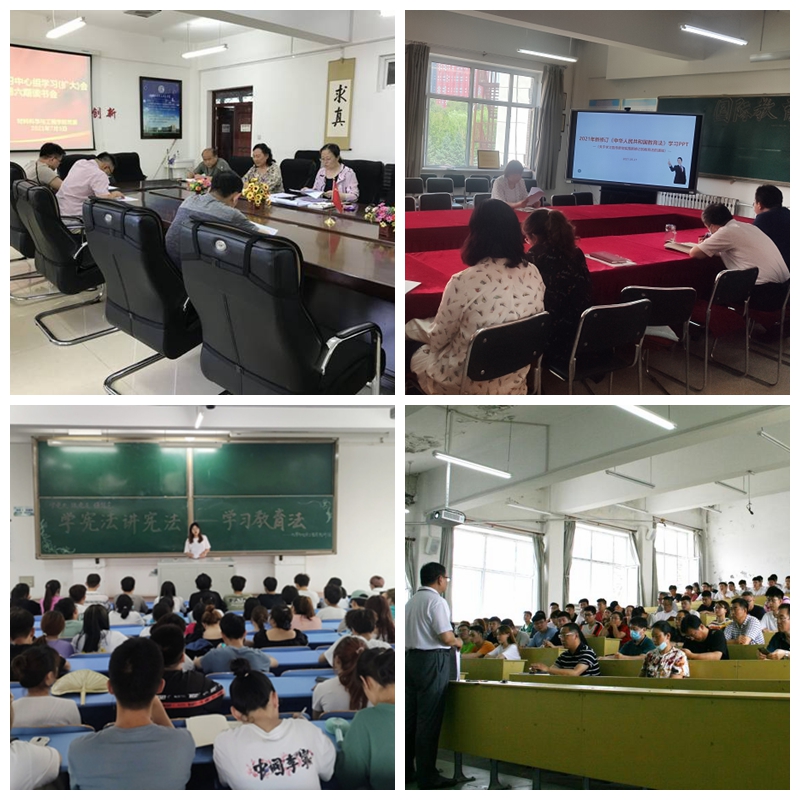哲學與法學學院、馬克思主義學院、文學與歷史文化學院(新聞傳播學院)、材料科學與工程學院、機電工程學院、建筑與土木工程學院、國際教育學院、經濟與管理學院、輕工與紡織學院、化學與化學工程學院、通信與電子工程學院、食品與生物工程學院等迅速行動,以習近平法治思想為指導,通過結合黨史學習教育、大學生“學憲法講憲法”、教師培訓、理論宣講等活動,面向師生深入開展了不同形式的系列學習宣傳活動。
