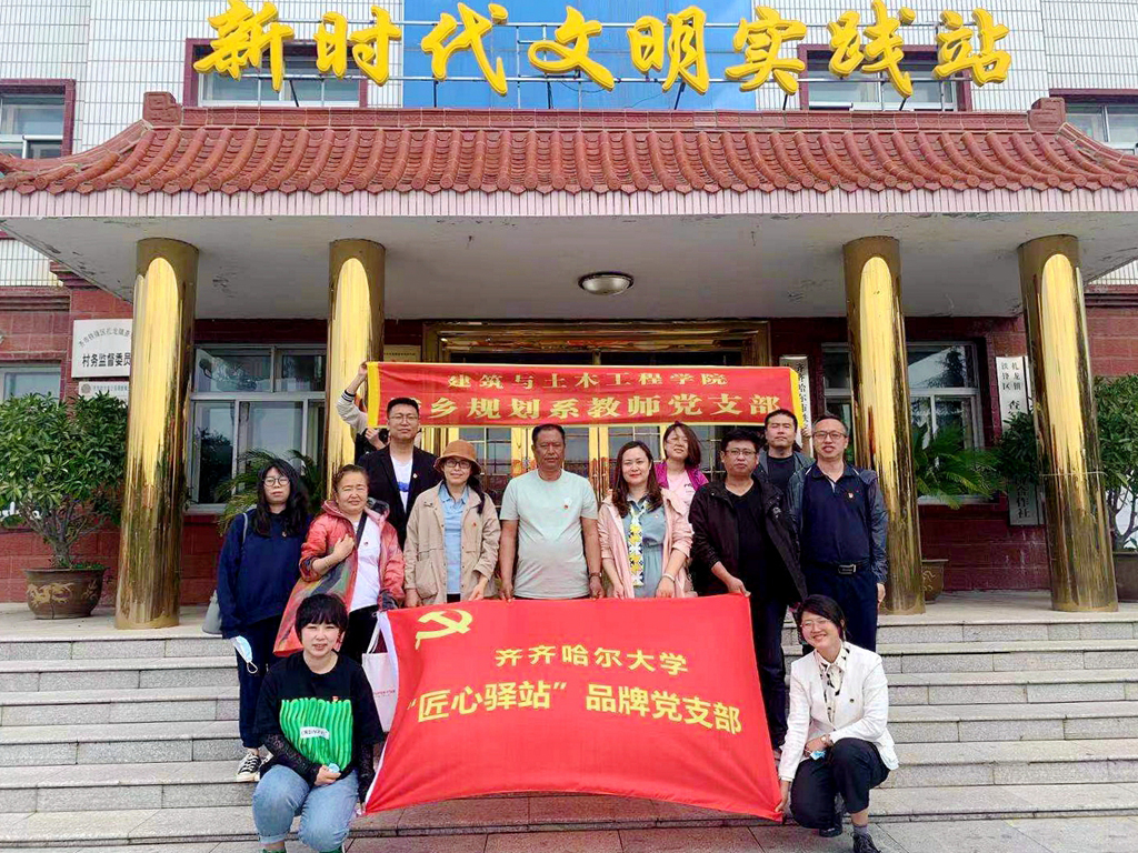 踐行服務初心使命,弘揚匠心精神。為鞏固黨史學習教育成果,踐行“匠心驛站”品牌支部成立初心,支部開展服務育人、服務社會志愿服務活動。結合城鄉規劃專業實際情況,黨支部發揮引領示范作用、每學期都至少開展一次“教師黨員為學生”的服務活動,也會帶領師生參與到村鎮的規劃設計、工程實踐中去,實現匠心情懷。自2017年起,支部黨員教師開始帶領學生參加村鎮規劃調研、助力美麗鄉村建設等志愿服務共7次,涵蓋8個村鎮,參與師生100余人。實踐成果前后獲得2019年全國大學生村莊規劃編制志愿服務活動優秀實踐成果二等、2021屆“挑戰杯”黑龍江省大學生課外學術科技比賽一等獎等5項榮譽。2021年8月份,中國建材報發表了以《齊齊哈爾大學建筑與土木工程學院—教學與思政相得益彰》為題的文章,對支部建設工作表達出了肯定與期待,文章被“新華網”“今日頭條”“網易新聞”“搜狐新聞”“學習強國”等多個公眾媒體平臺轉載,支部開展的活動得到了社會的廣泛認可。