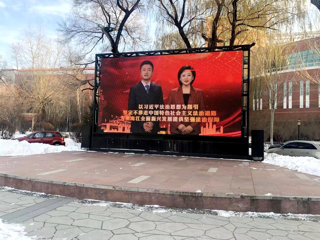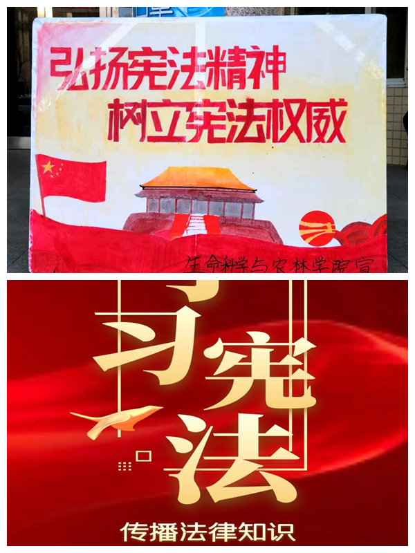 宣傳部在“三致廣場”播放憲法活動宣傳周視頻,各學院通過制作宣傳板報、宣傳標語營造宣傳氛圍。