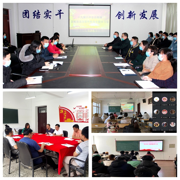 各黨委、直屬黨支部組織師生員工圍繞習近平法治思想、中國共產黨第十九屆中央委員會第六次全體會議公報及決議等內容,結合工作實際,舉辦專題黨課,召開班團會,學習憲法,開展研討交流,深化思想認識,弘揚憲法精神。