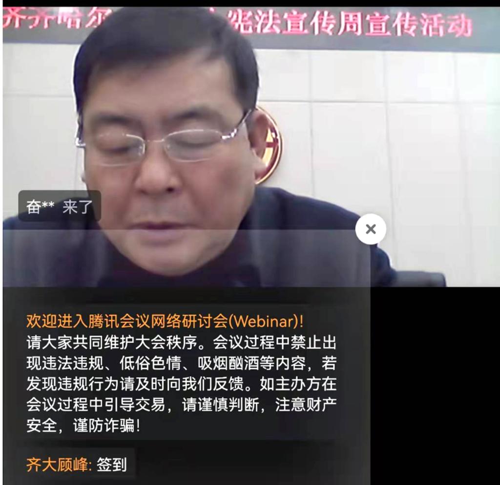 12月3日,校工會組織全體教職工在線上參加憲法大講堂活動,聆聽齊齊哈爾市委黨校法學教研部王宇教授解讀習近平法治思想。