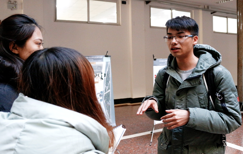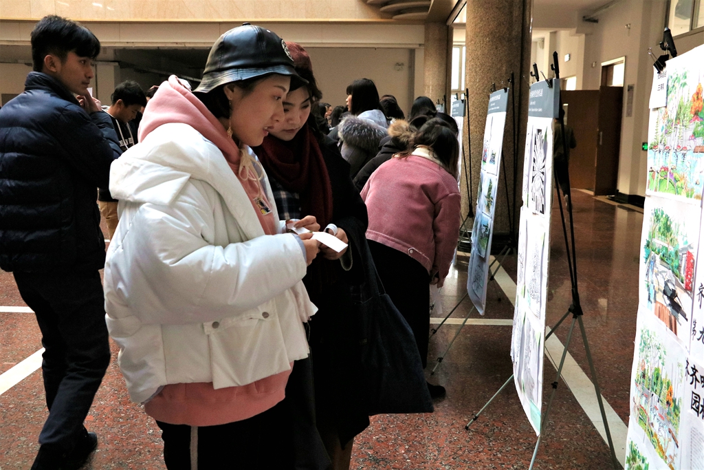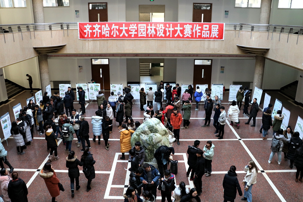 11月29日下午,齊齊哈爾大學第九屆園林設計大賽作品展在西區(qū)主樓一樓陽光大廳舉辦。副校長李英杰到展覽現(xiàn)場觀看作品,學生工作部(學生處)部(處)長姜波,生命科學與農(nóng)林學院黨委書記楊銘,生命科學與農(nóng)林學院副書記、副院長張培華以及園林系師生共同觀看了展覽。