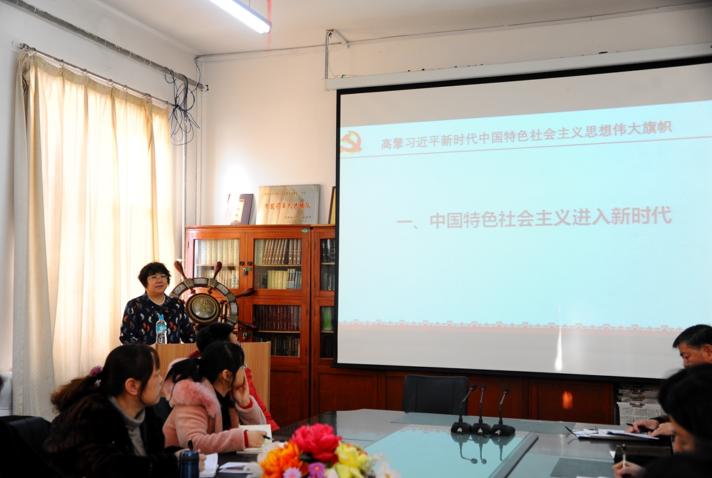 在中區馬克思主義學院會議室,校黨的十九大精神宣講團成員、黨委宣傳統戰部部長、碩士生導師王曉梅教授以《高擎習近平新時代中國特色社會主義思想偉大旗幟》為題,從如何理解中國特色社會主義進入新時代、怎樣把握習近平新時代中國特色社會主義思想等重要內容,對黨的十九大精神進行了系統、全面、深入的講解。她指出,習近平新時代中國特色社會主義思想從理論和實踐結合上系統回答了新時代堅持和發展什么樣的中國特色社會主義、怎樣堅持和發展中國特色社會主義,學習黨的十九大報告,最重要的是要把習近平新時代中國特色社會主義思想學習好、領會好、貫徹好,這是黨的十九大報告的靈魂。馬克思主義學院全體教職工參加了宣講活動。