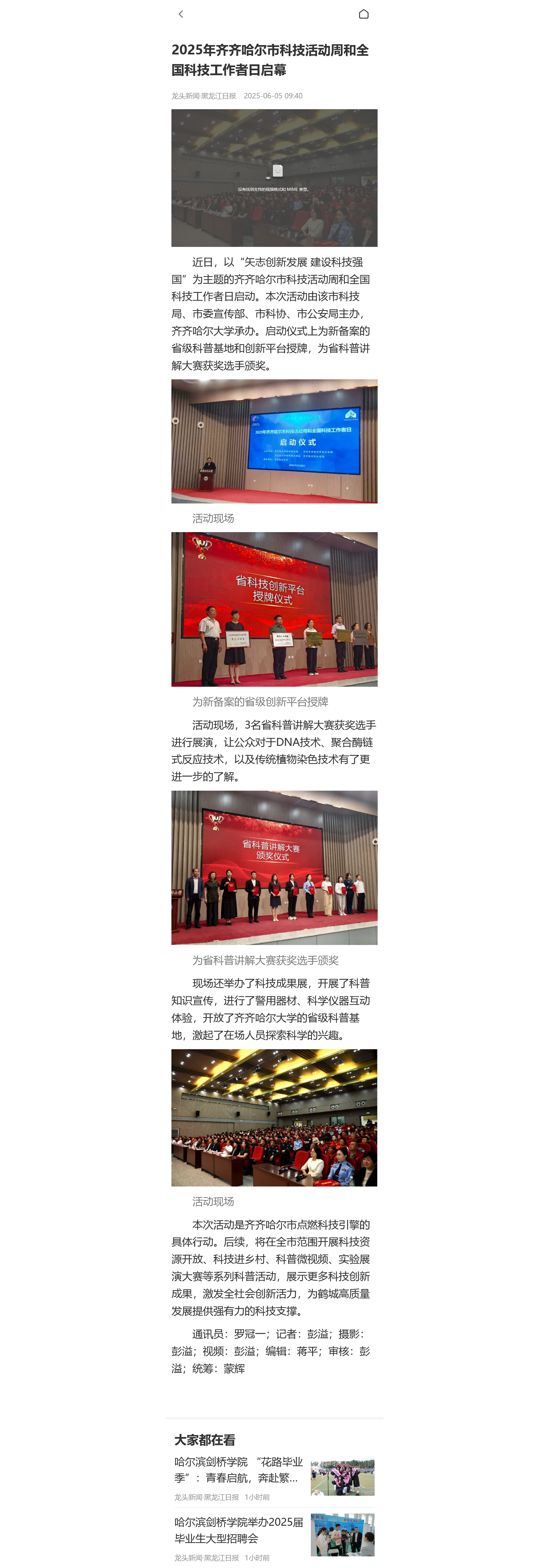 下一條:【強國號】立足地方、服務地方,齊齊哈爾大學攜產學研科技成果亮相高博會