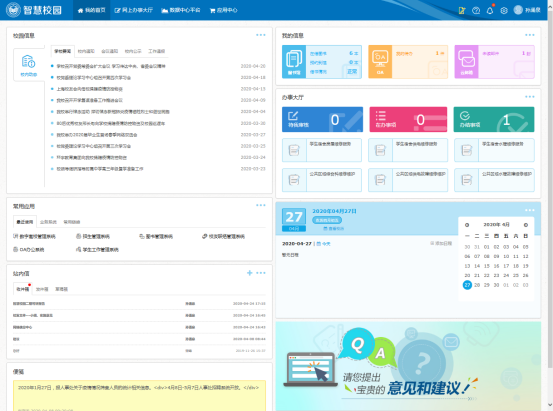 3.登錄之后看到智慧校園系統(tǒng)主界面如下圖。