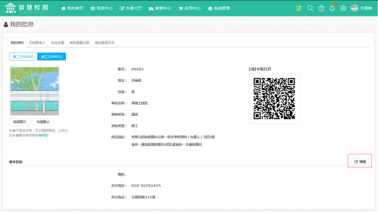 3.在我的資料頁(yè)面,您可以查看您的個(gè)人資料及相關(guān)基礎(chǔ)信息,其中只有基本信息可以通過(guò)點(diǎn)擊“編輯”按鈕進(jìn)行修改,如下圖所示