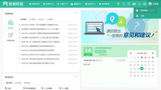 如何查看校內(nèi)通知、校內(nèi)公文、我的信息、辦事大廳、常用應(yīng)用、站內(nèi)信,便箋功能?