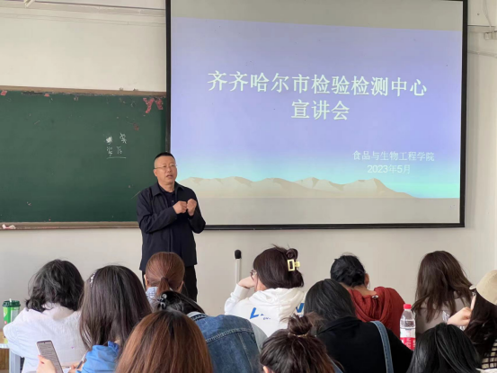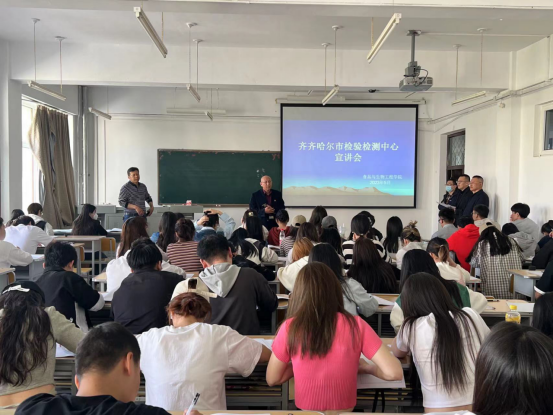 5月12日,王殿友和寧振鑫應(yīng)邀請來我院召開畢業(yè)生專場招聘會。齊齊哈爾市檢驗檢測中心隸屬于齊齊哈爾市市場監(jiān)督管理局,公益一類財政全額預(yù)算撥款事業(yè)單位,中心內(nèi)設(shè)13個部門,檢測范圍包含計量、質(zhì)量、食品、特種設(shè)備、標(biāo)準(zhǔn)化等領(lǐng)域。