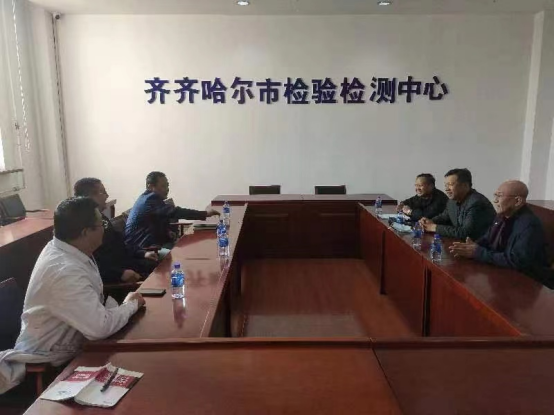 生工2005屆校友、齊齊哈爾市市場監(jiān)督管理局副局長劉韓,齊齊哈爾市檢驗檢測中心黨委副書記賈世明,食品88屆校友、齊齊哈爾市檢驗檢測中心食品所所長王殿友,2012屆校友、市場監(jiān)督管理局辦公室主任寧振鑫參加會談。