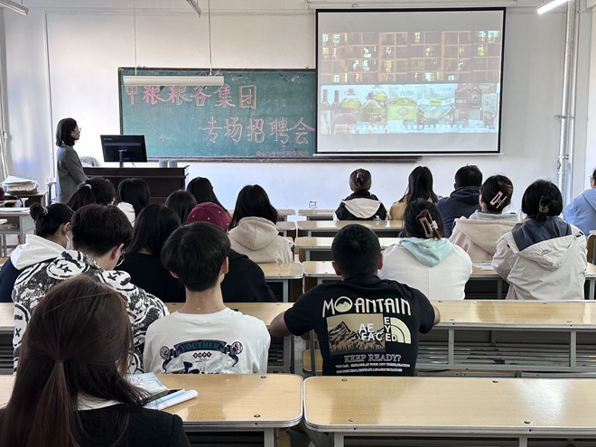 為深入實施就業優先戰略,讓我院應屆生了解就業行情,明確就業的信心,充分發揮校園招聘主渠道作用。我院于2023年10月26日下午2點30分在延德樓330多媒體教室舉辦中糧糧谷集團專場招聘會。本次活動由中糧糧谷公司工作人員主講,我院部分20級應屆生參加此次活動。